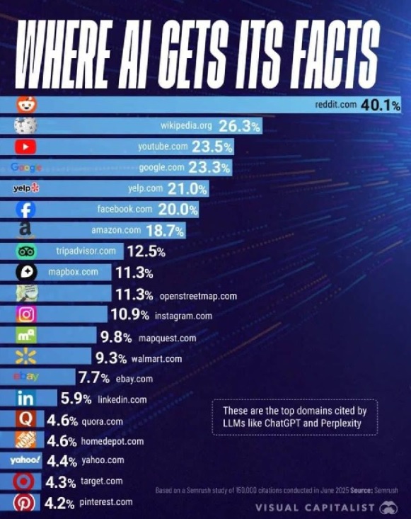 Говнофорум стал главным источником данных для ChatGPT и других популярных чат-ботов. Аналитики выяснили, что 40% информации для ответов берётся из помойки, где любой придурковатый пользователь может писать всё что угодно