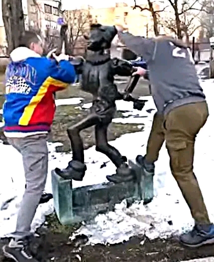 Видео демонтажа монумента Буратино в Киеве обрастает слухами и ширится социальными сетями. Съемки происходят в Святошинском районе, в Академгородке на территории детского дошкольного учреждения. Перескажу сюжет, тем кто не посмотрел : два жлоба, первый бритый наголо и крупный, второй в яркой куртке, помельче долго раскачивают, нагибают Буратино, и при отсутствии болгарки, выламывают его с постамента. Удовлетворенно хмыкают и несут поверженного на переплавку в пункт приема вторсырья.