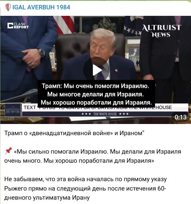 В Израиле тоже поют оды Трампу, он ведь Daddy-покровитель, без него вообще многое не разрулить, здесь все понятно. Хотя некоторые уже догадались что война с Ираном, это затея американцев, не обязательно одного лишь Рыжего и прекратили они ее сами, сведя по сути в ничью. Иран и Биби не являлись инициаторами сворачивания, это все помнят, надеюсь.