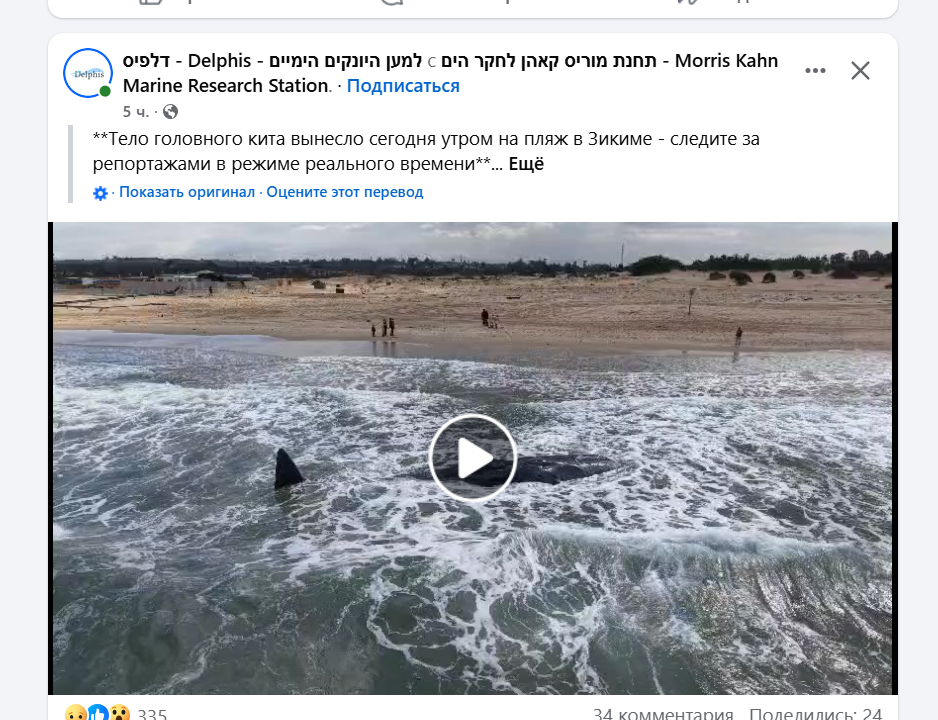 у Ашкелона кит выкинулся на берег.